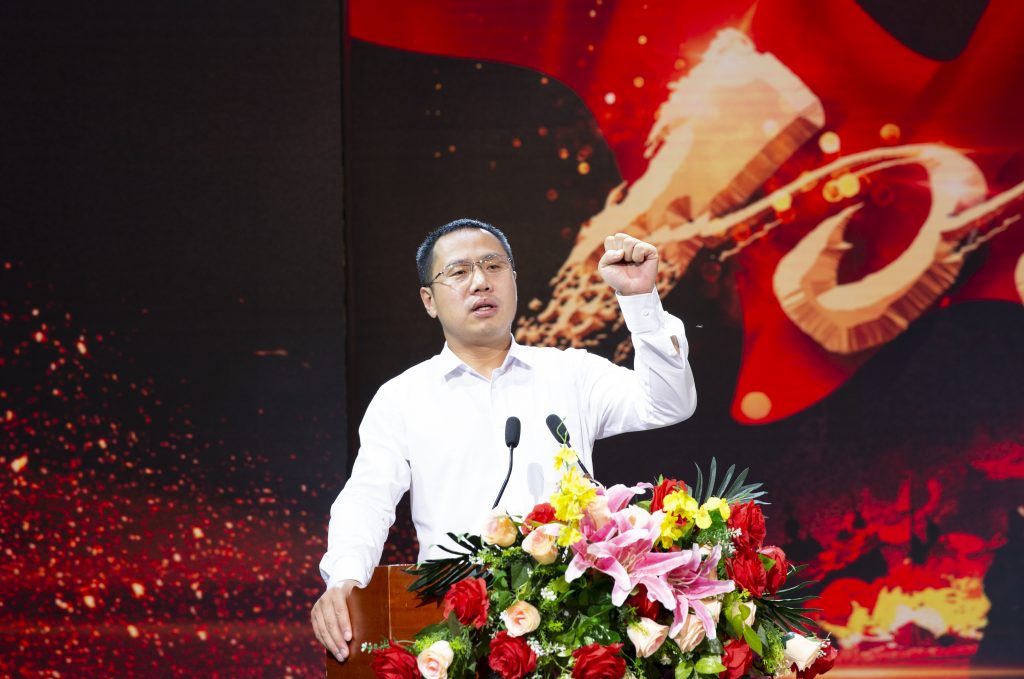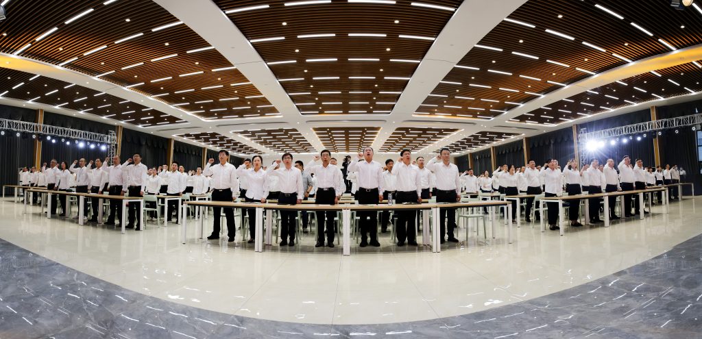 龙宏欣表示,截至目前2021年订单相比往年实现翻倍,公司又恰逢上市关键期,形势异常严峻。“咬紧牙关,突出重围”是卫华人的必然选择;全体中高层领导要以身作则,以高度的责任心和使命感立足本职工作,敢于担当,切实履行主体责任;全体卫华人要保持充分的热情和激情,勇于拼搏,艰苦奋斗,确保全面打赢这场攻坚战! 在常务副总经理谢保华的带领下,全体参会人员举起右拳,庄严宣誓!