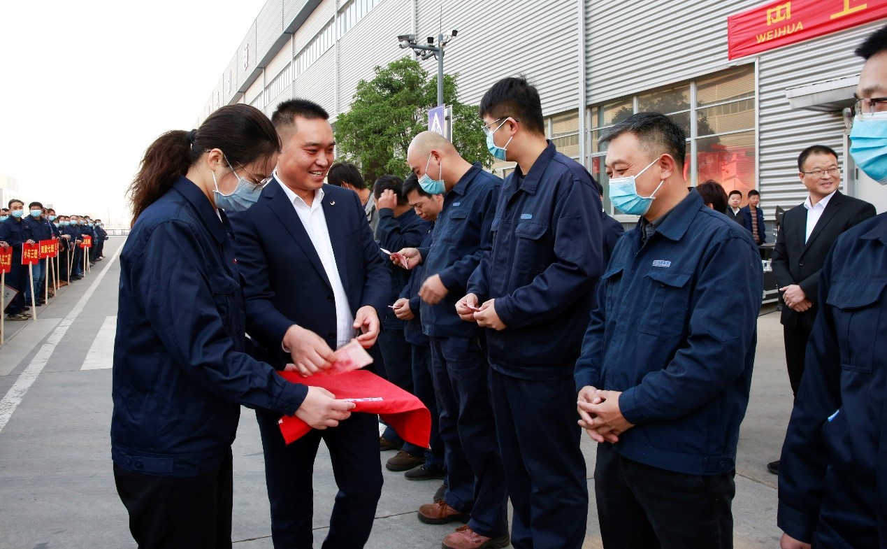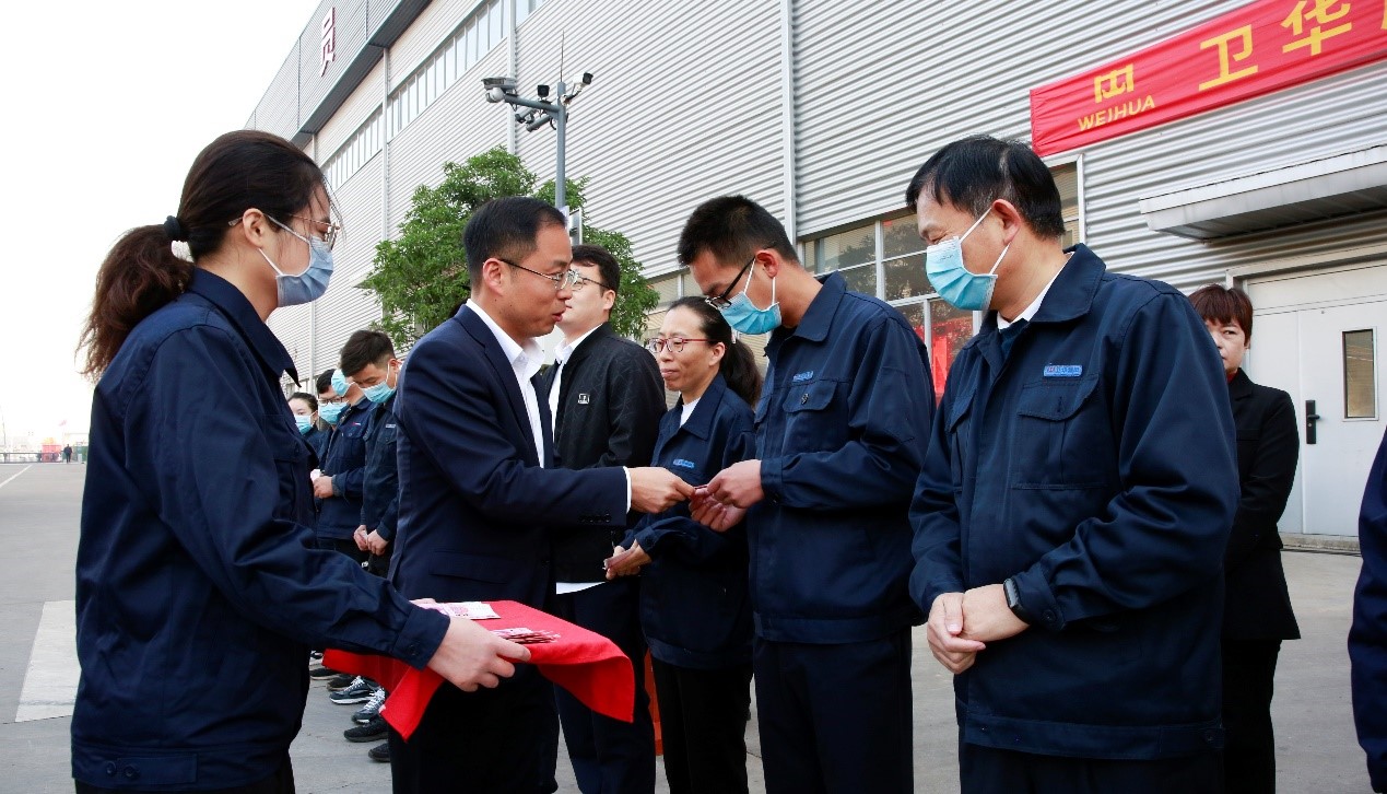 卫华股份总裁崔鹏、执行总裁谢保华,质量安环中心总监钮鹏超,制造管理中心副总监孙朋、代艳云,以及生产系统各部门负责人和所有一线员工参加会议。会议由质量安环中心副总监王爽主持。
