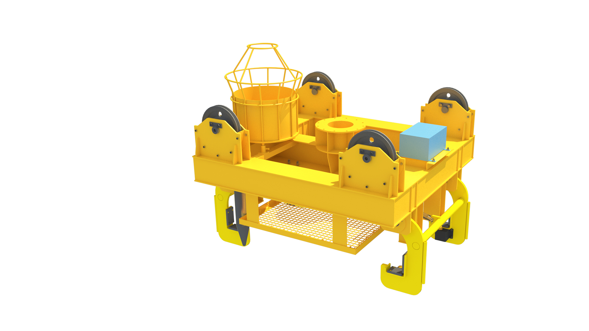 四吊点连接,刚性导柱防摇,运行平稳。